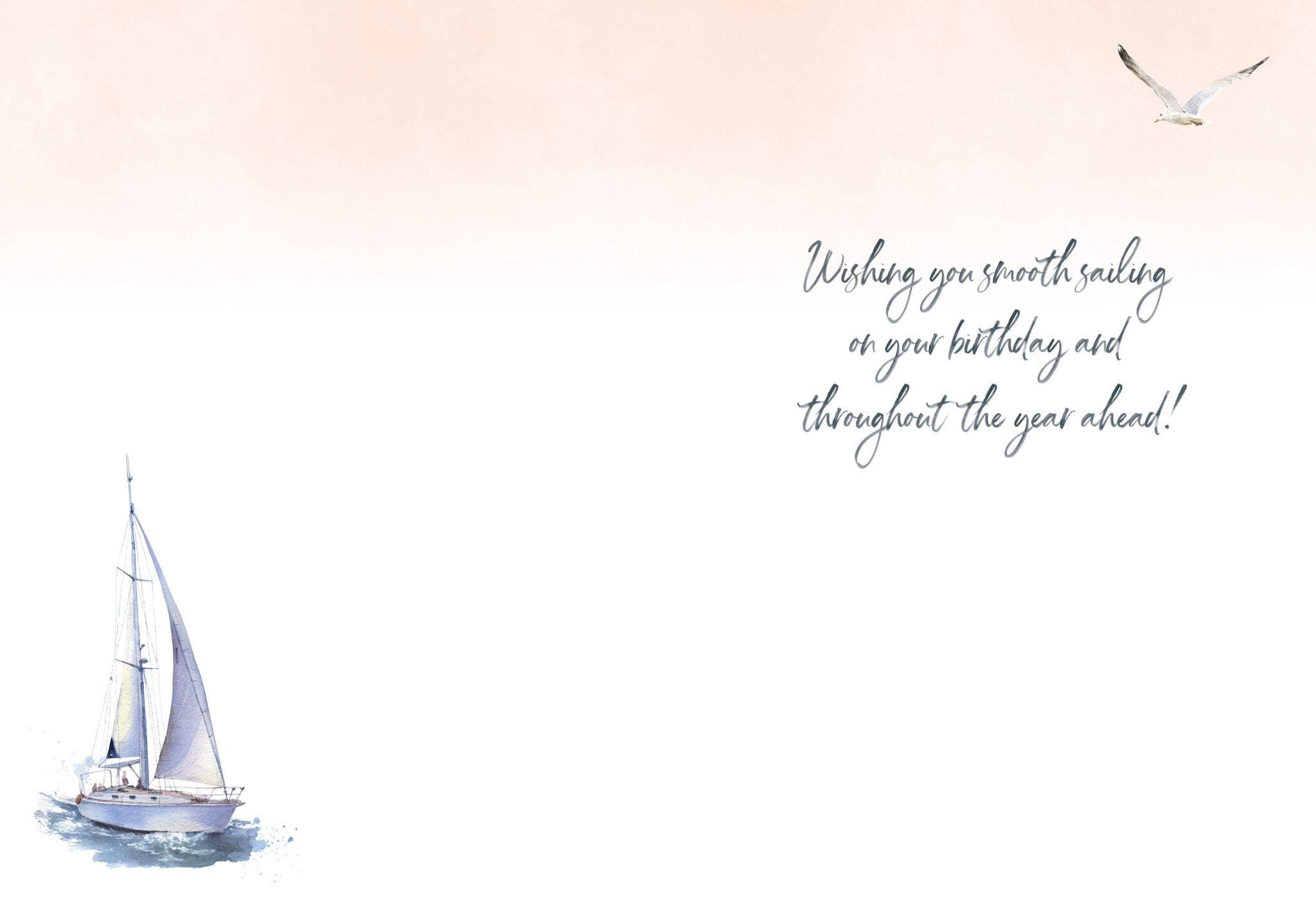 Full size card measuring 5×7″ is printed in Canada with full colour on the interior & exterior. Each card includes an envelope and wrapped in cellophane. INSIDE: Wishing you smooth sailing on your birthday and throughout the year ahead!