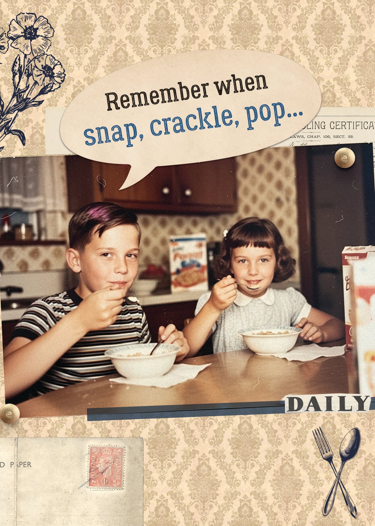 5 x7″ Card with Kraft Envelope. INSIDE: was just a breakfast cereal, not the sound of your body getting up from a chair? Happy Birthday