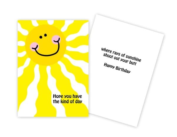 Size: 4 1/2 x 6 INSIDE: Where rays of sunshine shoot out your butt. Happy Birthday!Printed in Canada