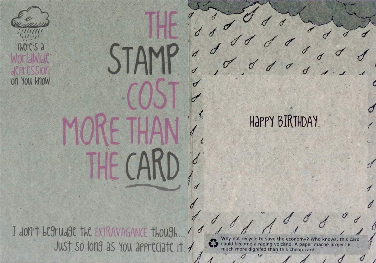 Size: 5″x7″, Humour, Cheap and Miserable, 4 colour print, Inside: Happy Birthday!