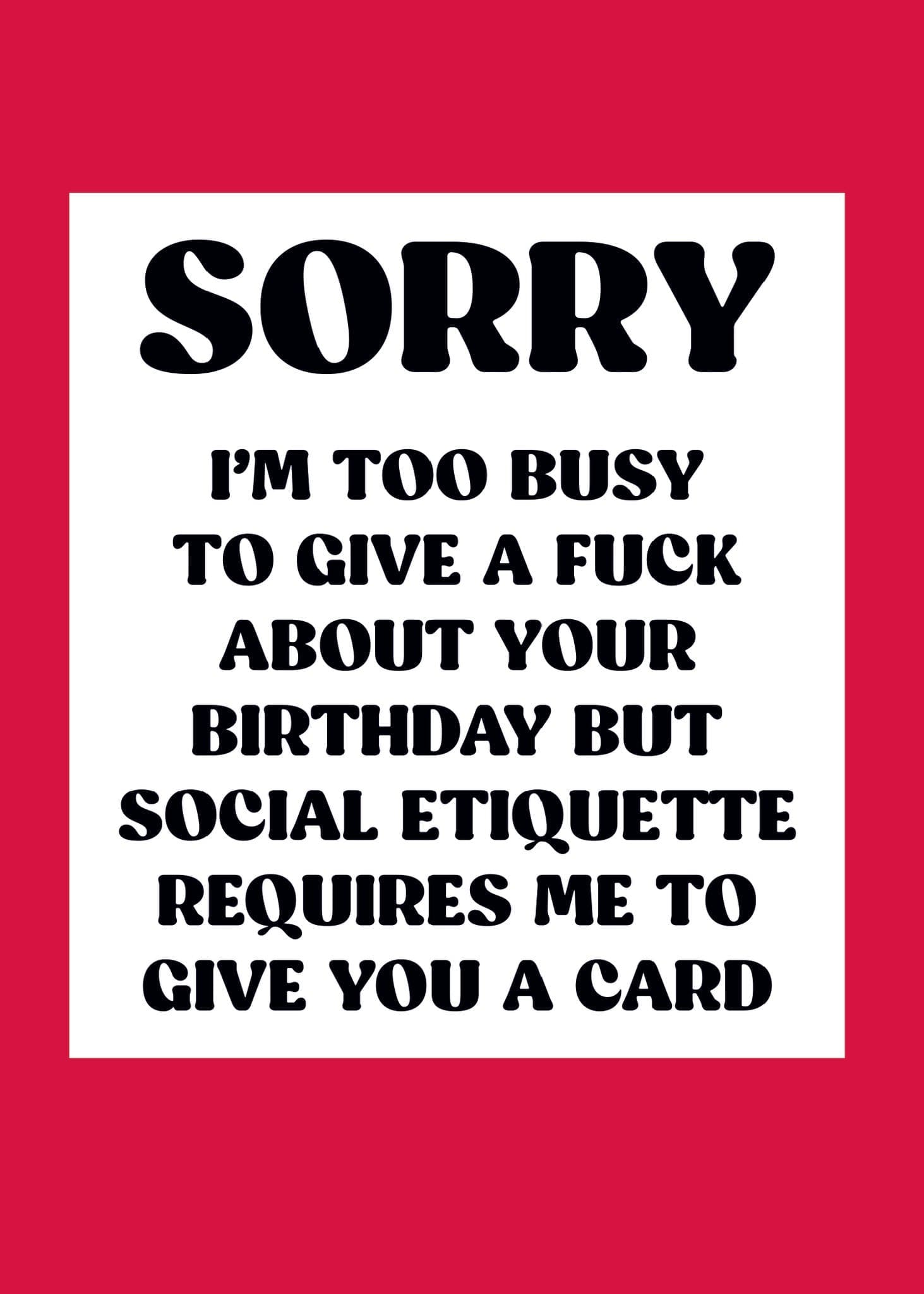This greeting card measures 5″ x 7″. INSIDE: I am nothing if not fucking proper! Happy birthday. Printed in Canada