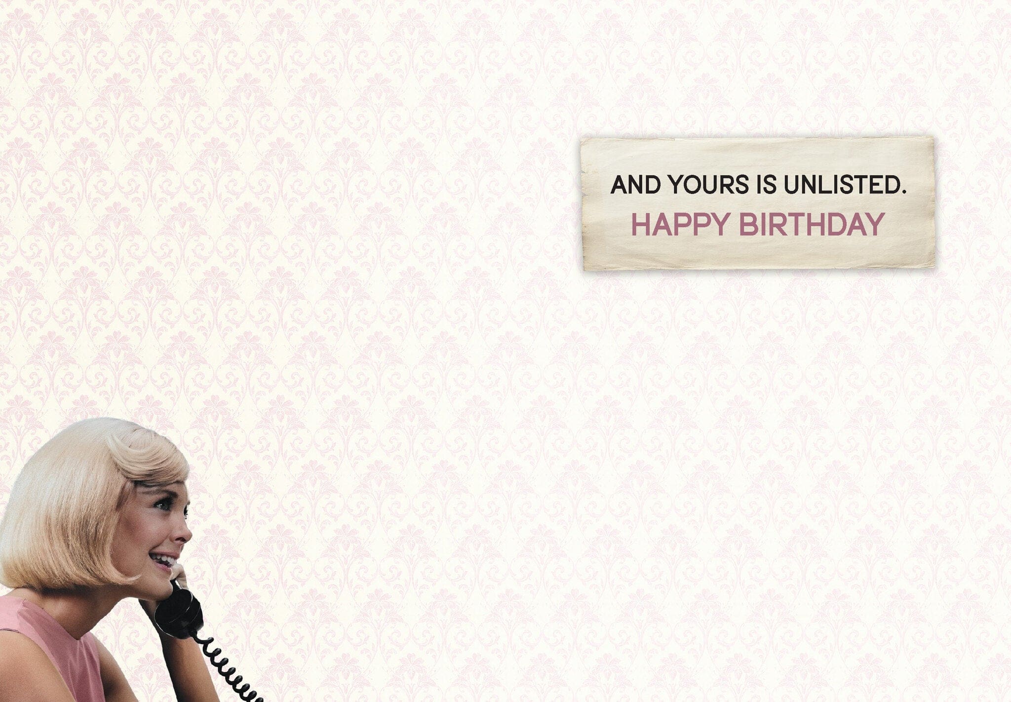 4.5″x6.25″, printed on coated paper, with coordinating envelope. Printed in Canada. Inside greeting: and yours is unlisted. Happy Birthday