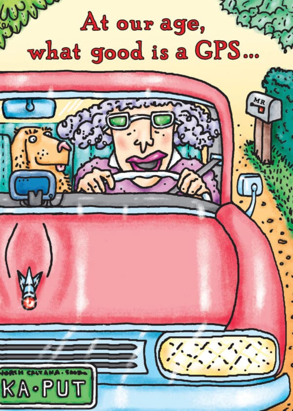 This 5″ x 7″ card is printed in Canada, in full colour (inside included) on recycled paper and is paired with a colour-coordinated envelope. INSIDE: … if we can’t remember why we got in the car in the first place?! Have a memorable birthday!