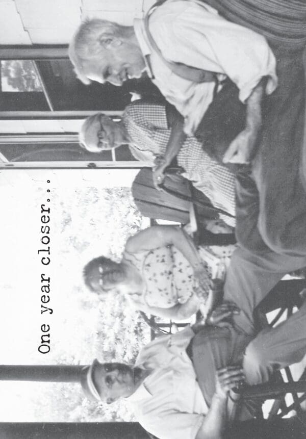 A humorous 4.75″ x 7″ greeting card lending a vintage photograph to coordinate with its outside. INSIDE: to needing a hand rail in the shower. Printed in Canada.