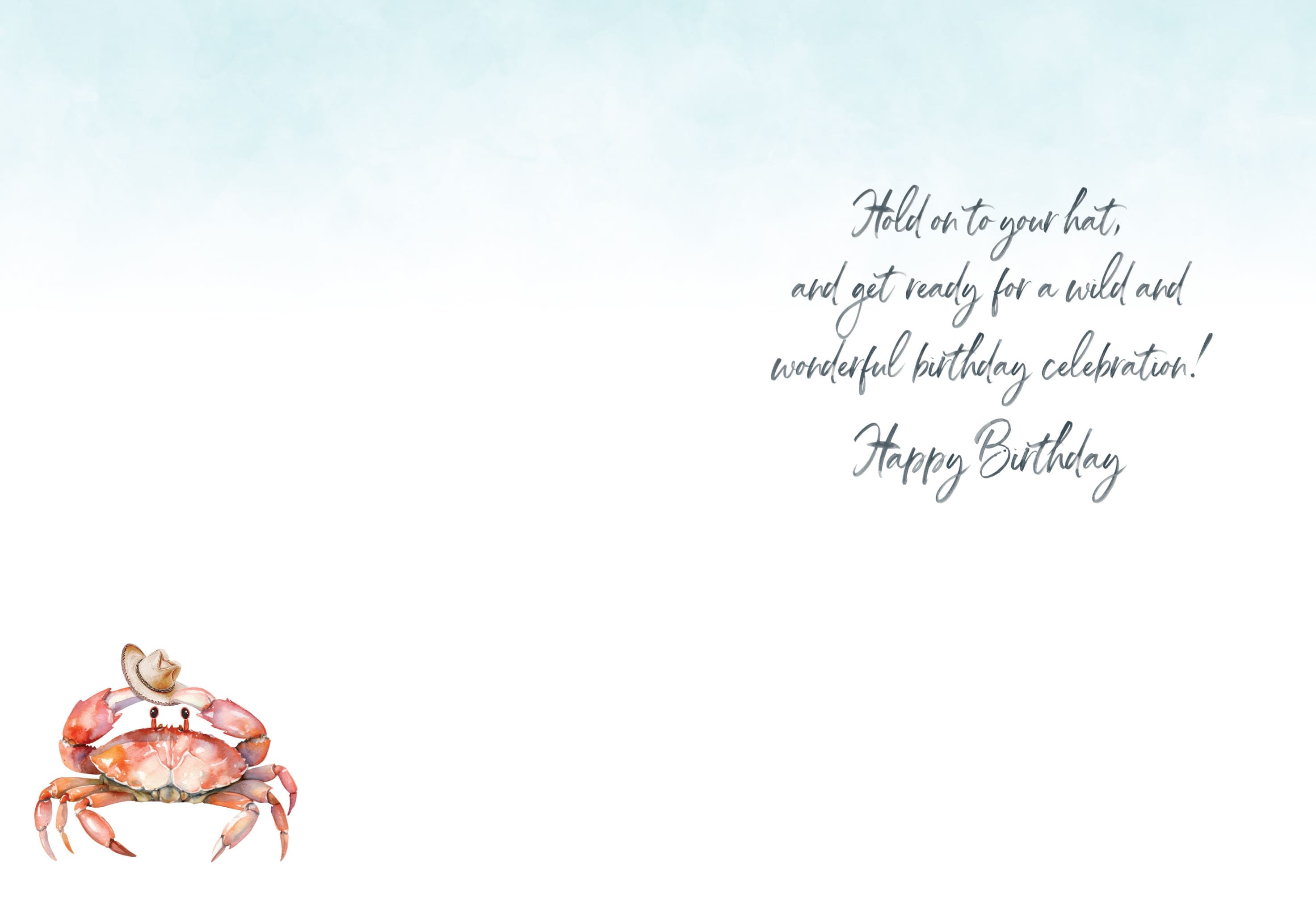 Full size card measuring 5×7″ is printed in Canada with full colour on the interior & exterior. INSIDE: Hold on to your hat and get ready for a wild and wonderful birthday celebration! Happy Birthday