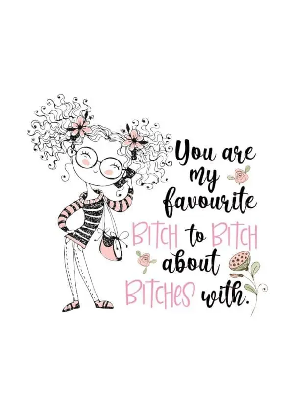 This greeting card measures 5 x 7 and comes with colourful envelopes. INSIDE: Have a Bitchin’ Birthday!. Printed in Canada