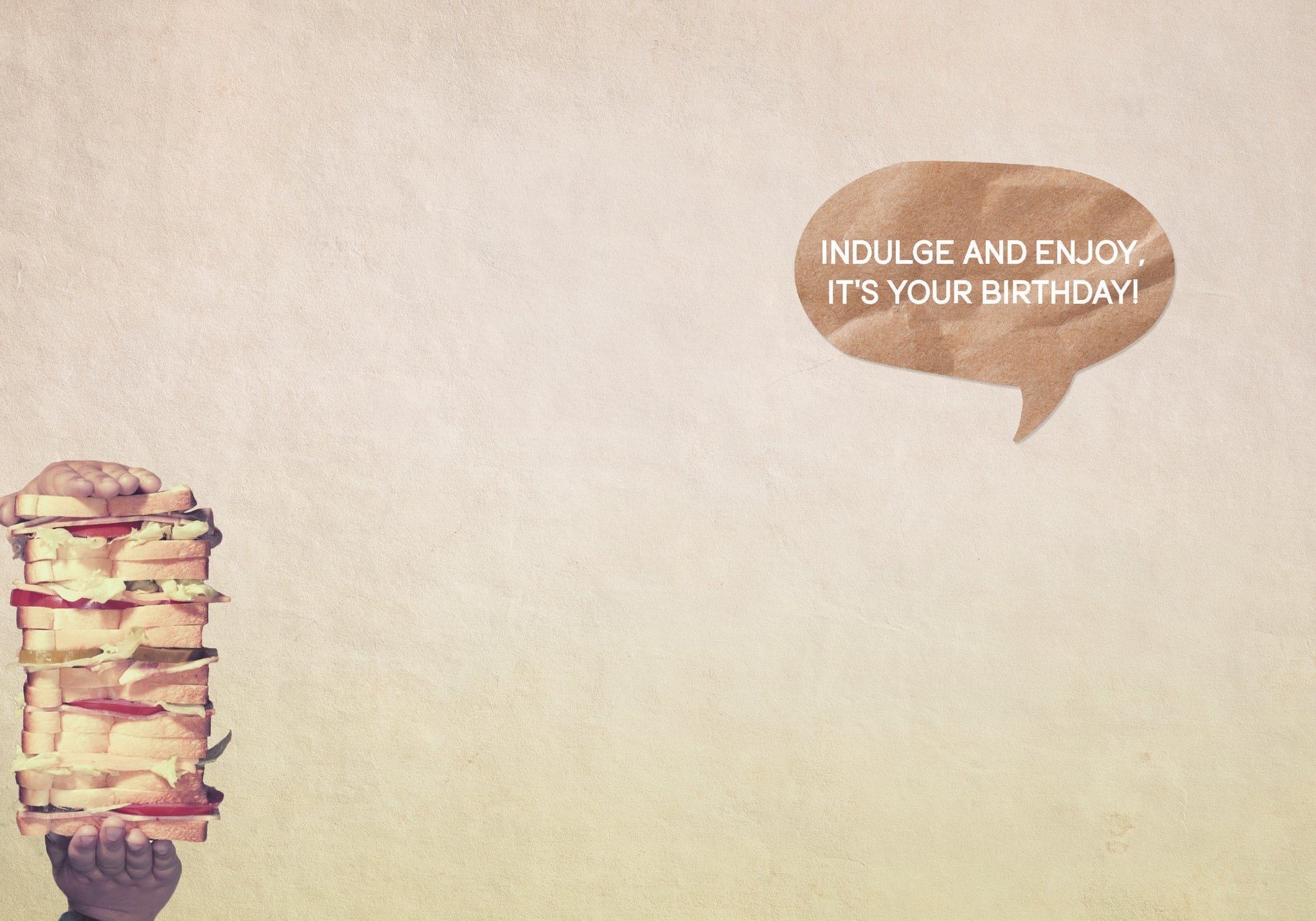 Each card measures 5″x7″ (13cmx18cm) and is printed in full colour on coated paper, comes with a coordinating colour envelope. Printed in Canada. Inside greeting: Indulge and enjoy, it’s your birthday!