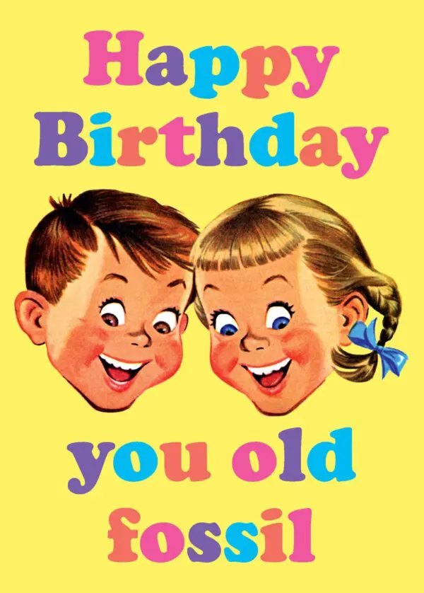 This greeting card measures 5″ x 7″. INSIDE: Look at you being another year older and shit.