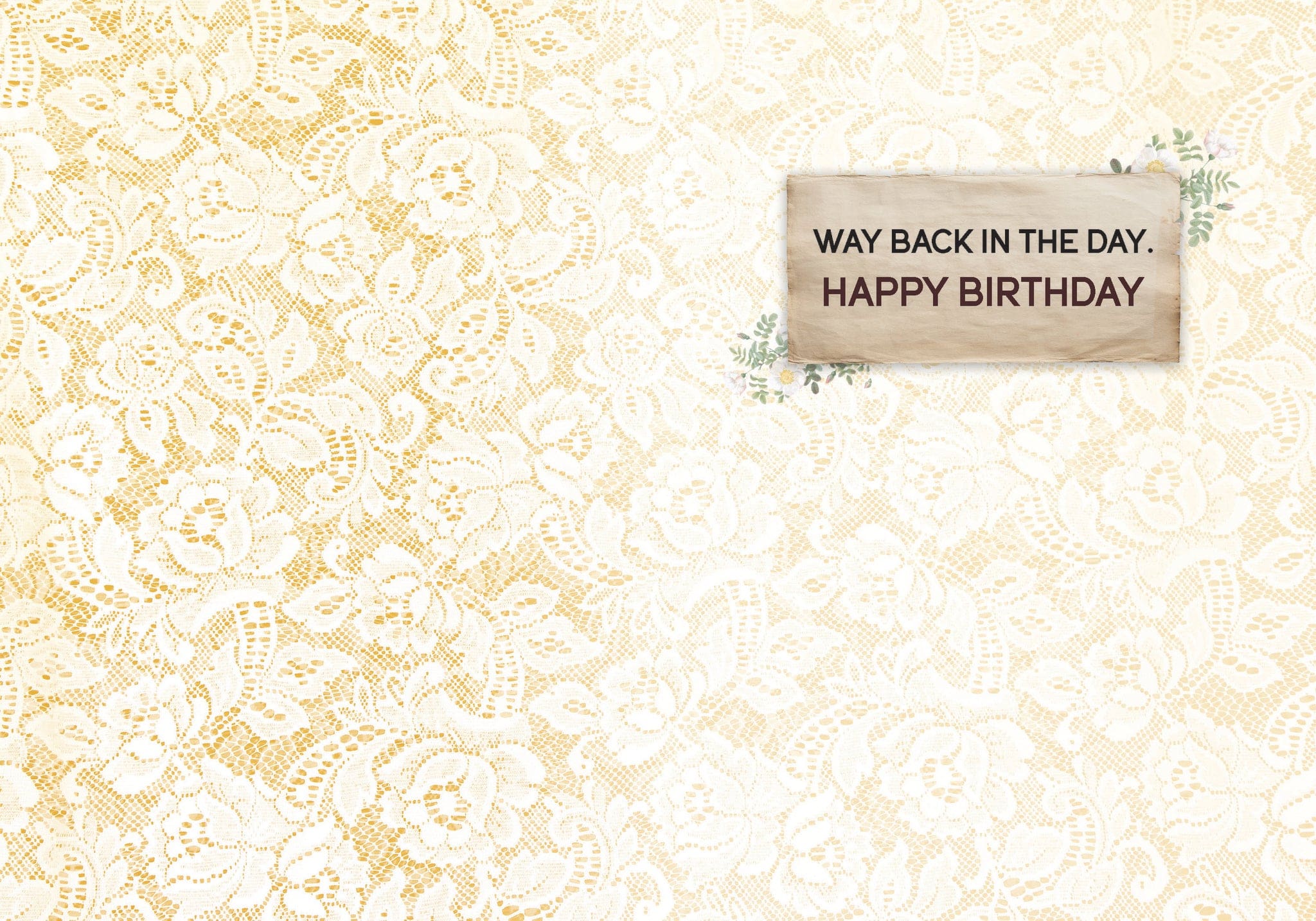 Each card measures 5″x7″ (13cmx18cm) and is printed in full colour on coated paper, comes with a coordinating colour envelope. Printed in Canada. Inside greeting: Way back in the day. Happy Birthday