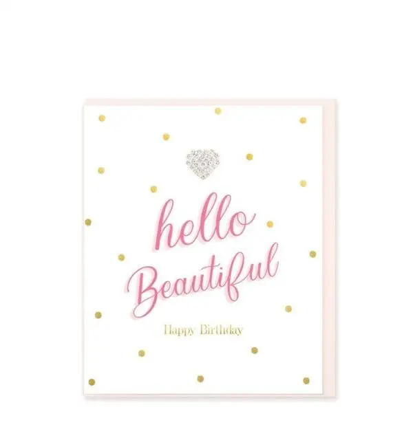 This 6.2› x 5.2› greeting card is finished with a beautiful gold foil, printed on luxury card stock and embellished with a sparkling diamante jewel. Presented with a luxury White envelope and cello wrapped. INSIDE: Blank