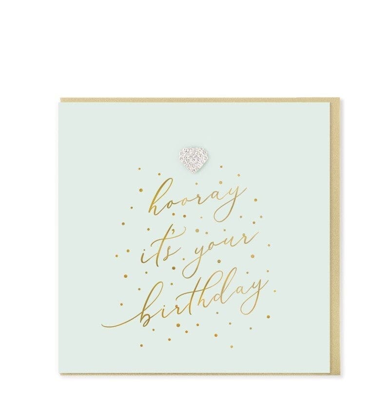 Mad Dots Cards. This 15cm x 15cm greeting card is printed on cardstock, features gold foil details and is embellished with a diamante jewel. Cellophane wrapped with a pearlescent gold envelope. Made in England. INSIDE: Blank