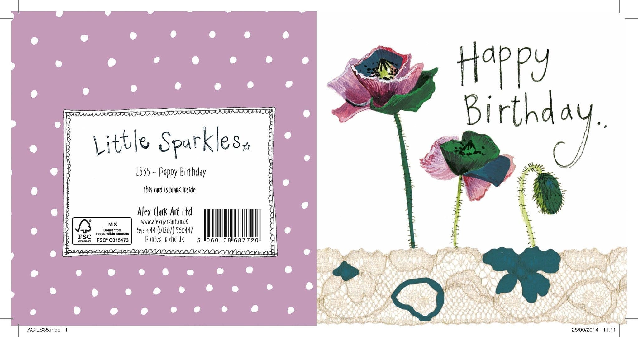This 5″ x 5″ Little Sparkle Card is cellophane wrapped with a white hammer envelope and features glitter for a special finish. Printed in the UK. INSIDE: Blank