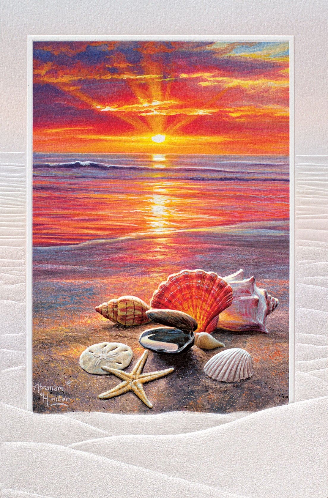 Gorgeous, embossed greeting card measures 8-1/4″ x 5-3/8″. Blank inside.