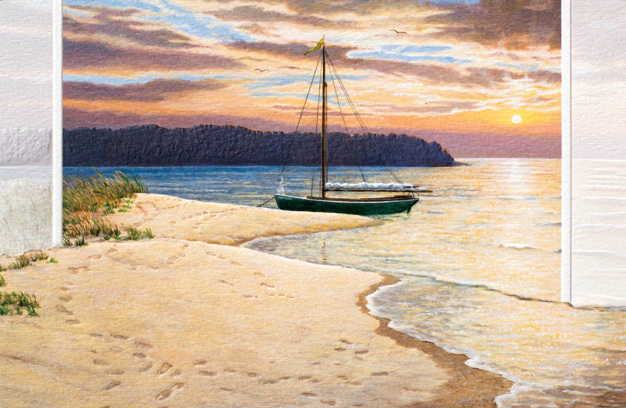 Gorgeous, embossed greeting card measures 8-1/4″ x 5-3/8″. Blank inside.