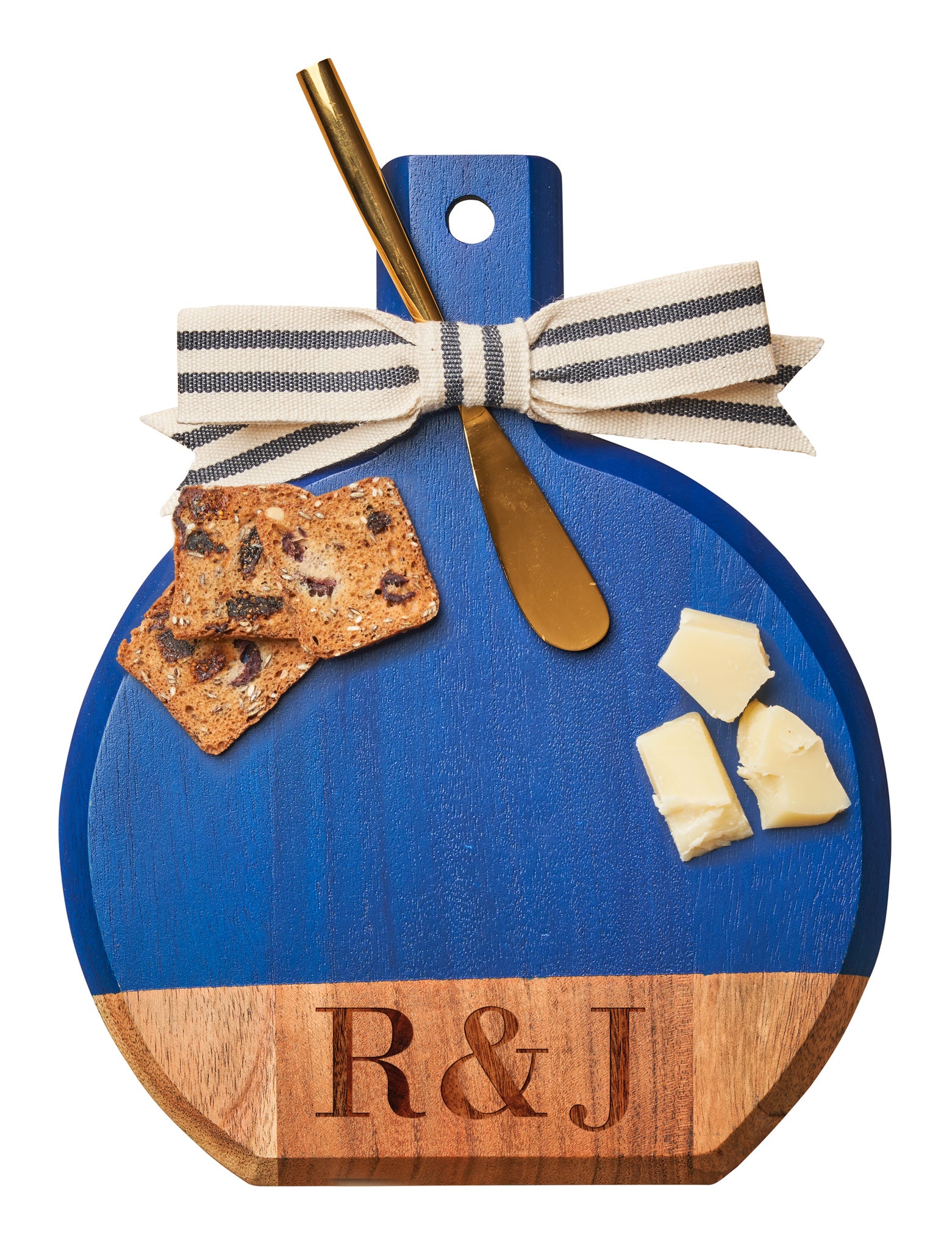 9.75 x 8 x .6″ Acacia Bevel Board – Medium – Blue w/ Gold Spreader & bow