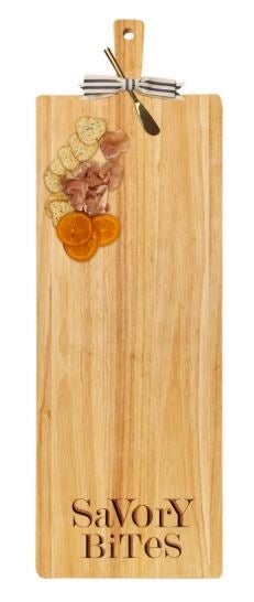 35” x 12” Rubber Wood Thick Handle Board w/ gold spreader & ribbon