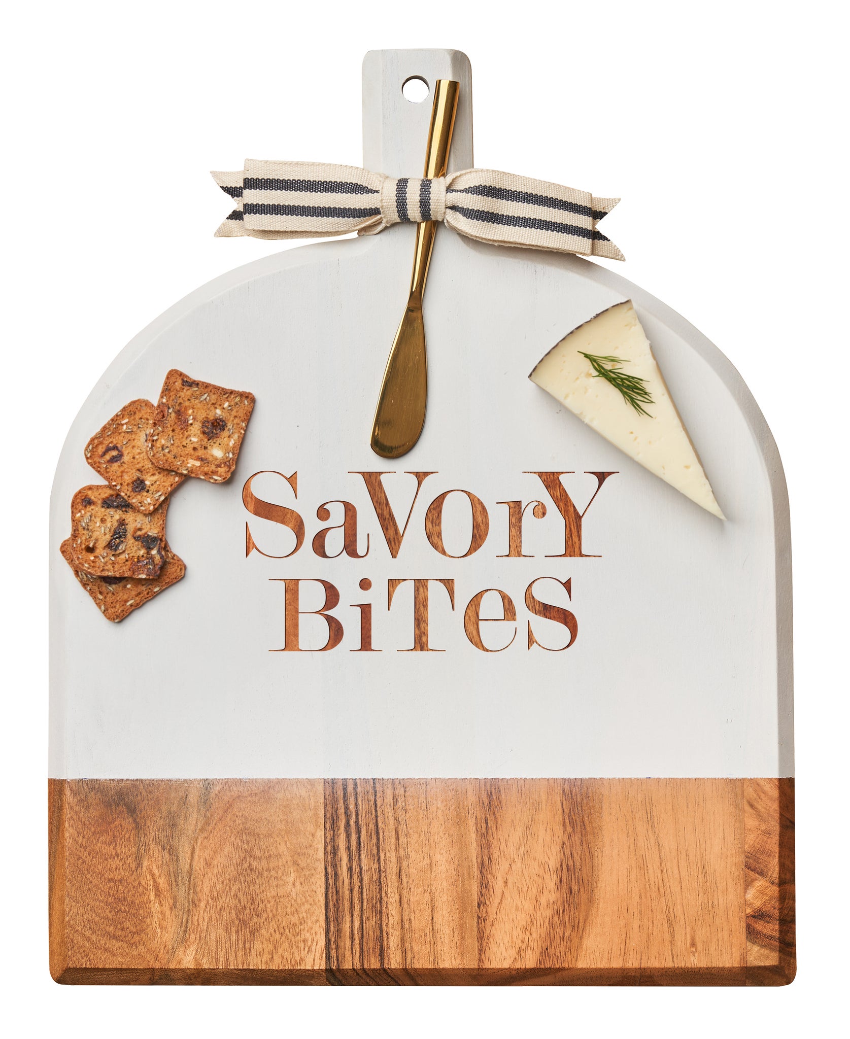 15 x 12” Acacia Bevel Board Large w/ Gold Spreader & Ribbon – Savory Bites