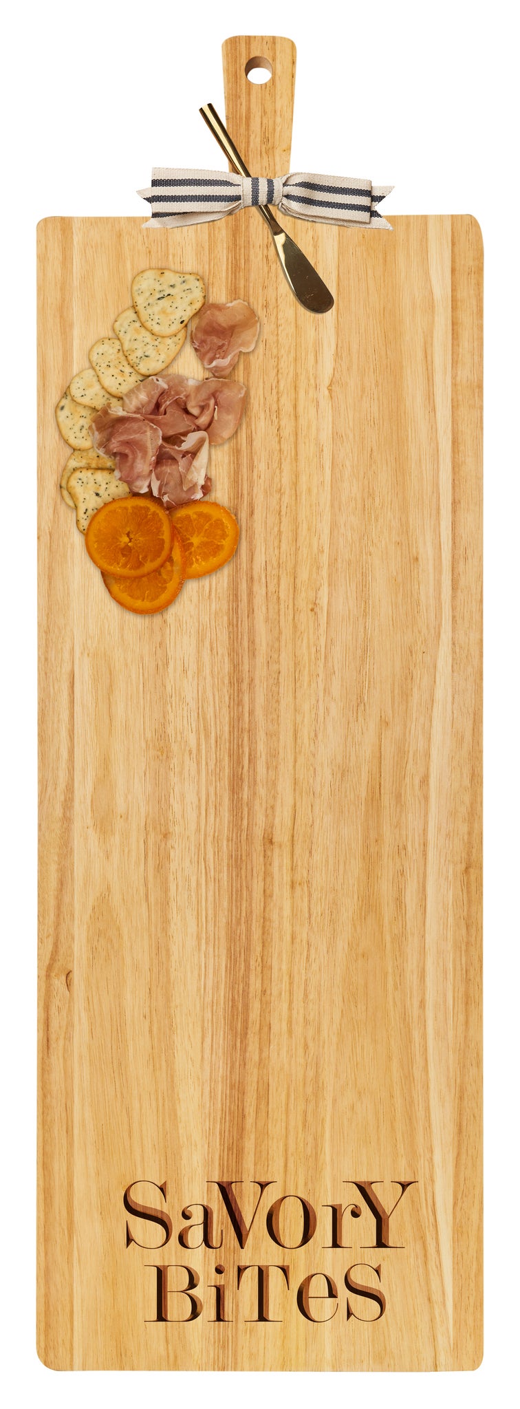 35 x 12” Rubber Wood Thick Handle Board w/ Gold Spreader & Ribbon – Savory Bites