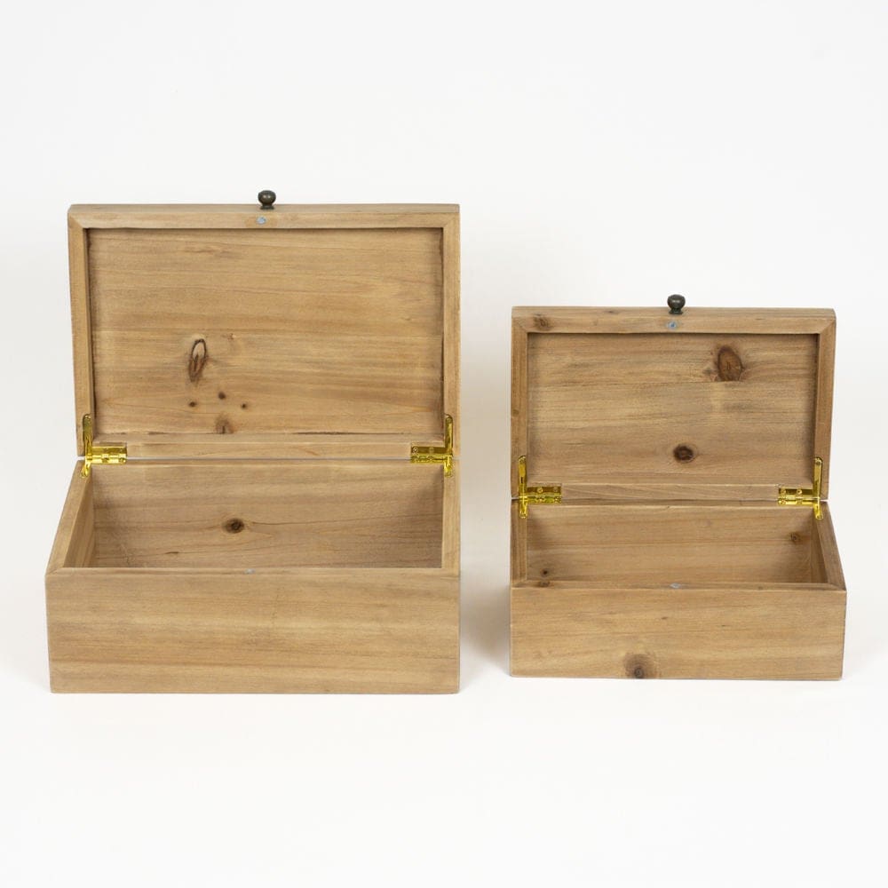 Set of 2 (9″x 3″x 5.5″ and 11″x 3.5″x 6.5″ Wood Nested Boxes made of natural fir wood. Organize and save all of your treasures.