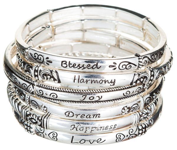 Silver Inspiration Stackable Bracelet Set. Product materials may include zinc, brass and steel with silver and rhodium plating. Lead safe.