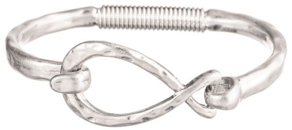 Silver Infinity Hook Cuff Bracelet. Product materials may include zinc, brass and steel with silver and rhodium plating. Lead safe.