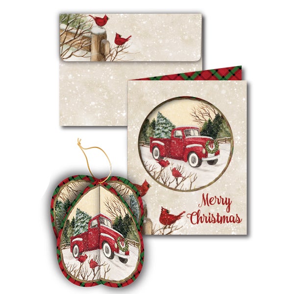 Includes eight cards and envelopes. Each card includes a 2-piece, 3 dimensional ornament with hanger 100% recycled cotton paper Card size: 4.25″w x 5.5″hOrnament size: 4″d