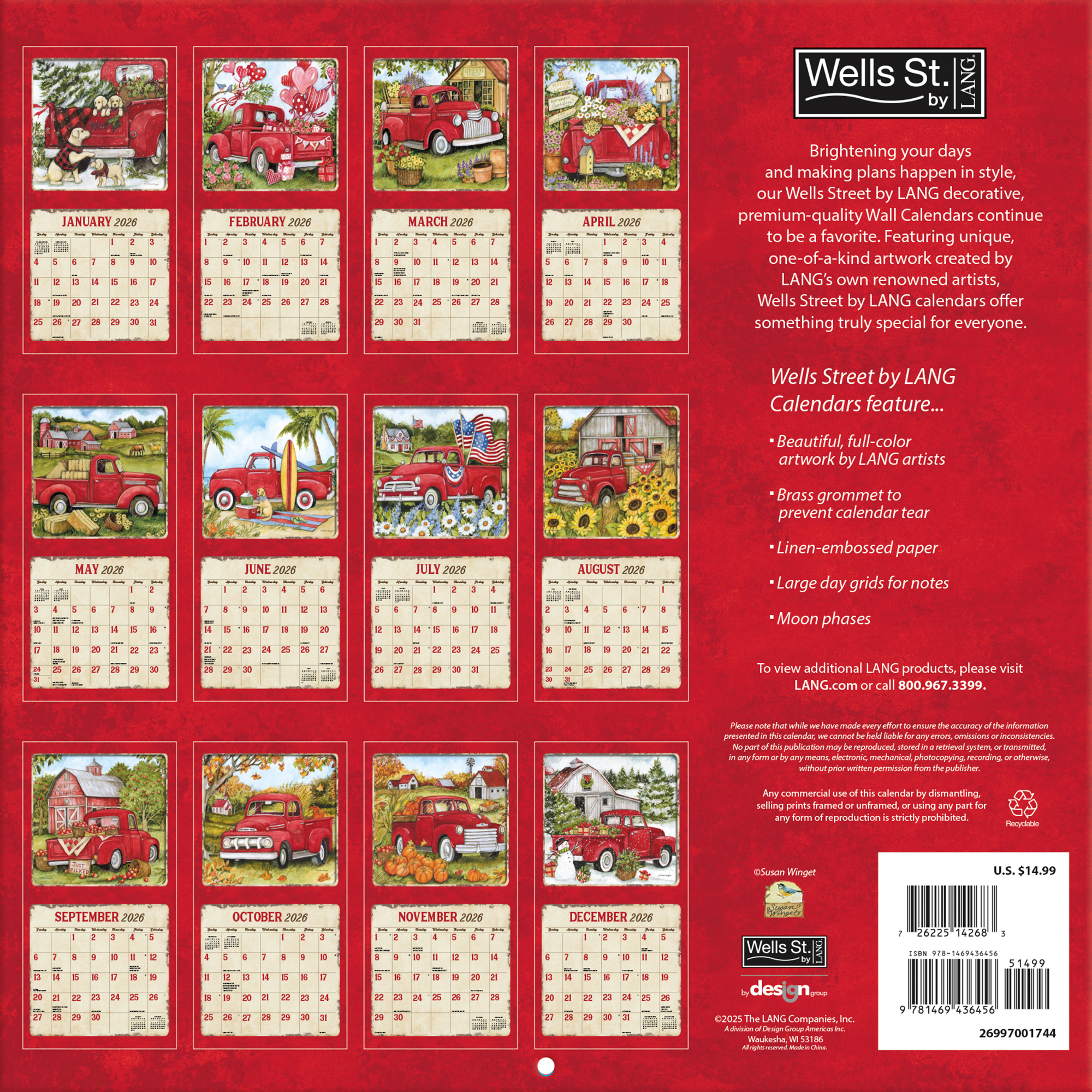 Wells St. by LANG Wall Calendars feature monthly full color images based on hand-painted originals, elegant linen-embossed paper stock, and a brass grommet for hanging.