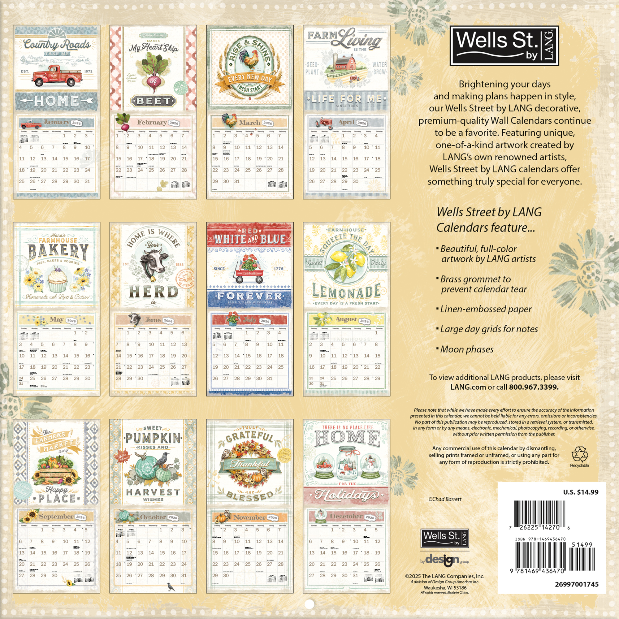 Wells St. by LANG Wall Calendars feature monthly full color images based on hand-painted originals, elegant linen-embossed paper stock, and a brass grommet for hanging.