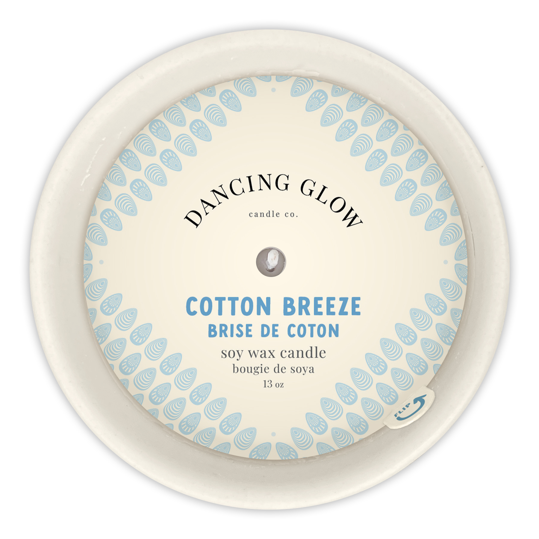 SCENT: Cotton Breeze – Crisp cotton linens fill the air. Our 13 Oz Soy Wax Candles are hand poured in Canada. CANDLE SIZE: 3.75″ D x 4.125″ H. BURN TIME: +/- 200Hrs