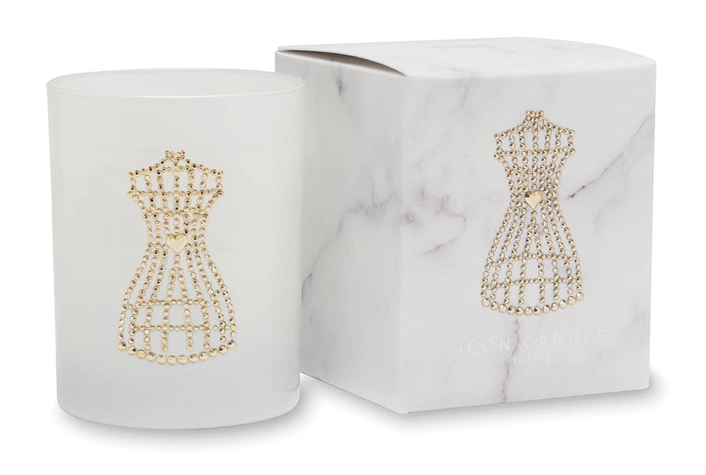 This candle comes with a matching hand-jeweled gift box, is hand-poured in small batches, has lead-free cotton wicks, made with the finest soy & vegetable wax blend ~50 hrs burn time. Scent: Sophisticated florals & amber. 255g (9 OZ)