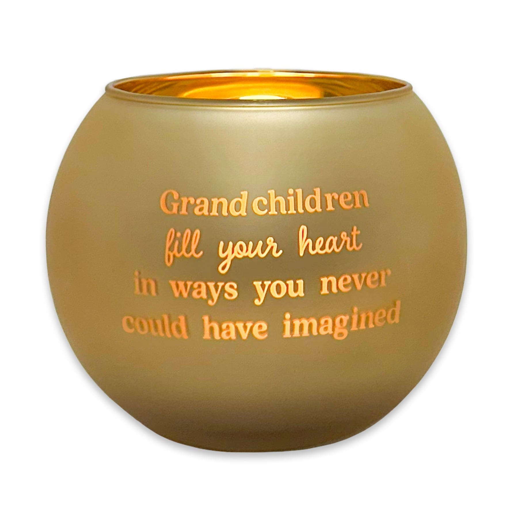 Candle Holder Size 3.75″ w x 3.125″ h Message inside: Grandchildren fill your heart in ways you never could have imagined