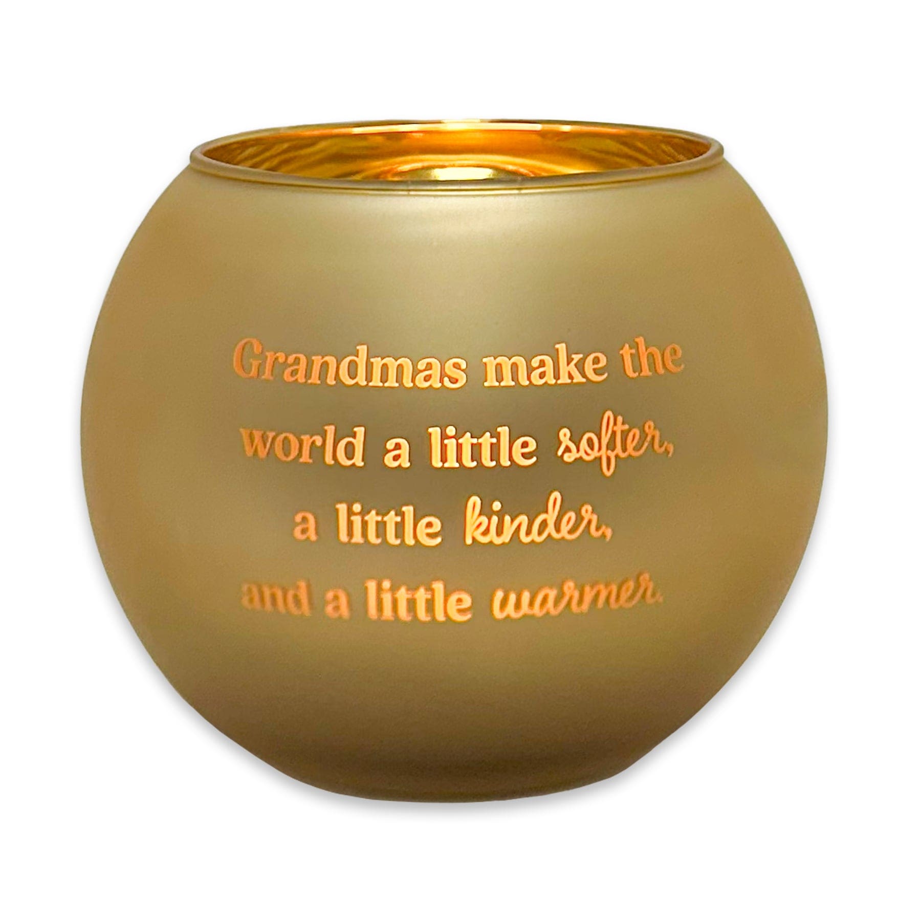 Candle Holder Size 3.75″ w x 3.125″ h Message inside: Grandmas make the world a little softer, a little kinder, and a little warmer.