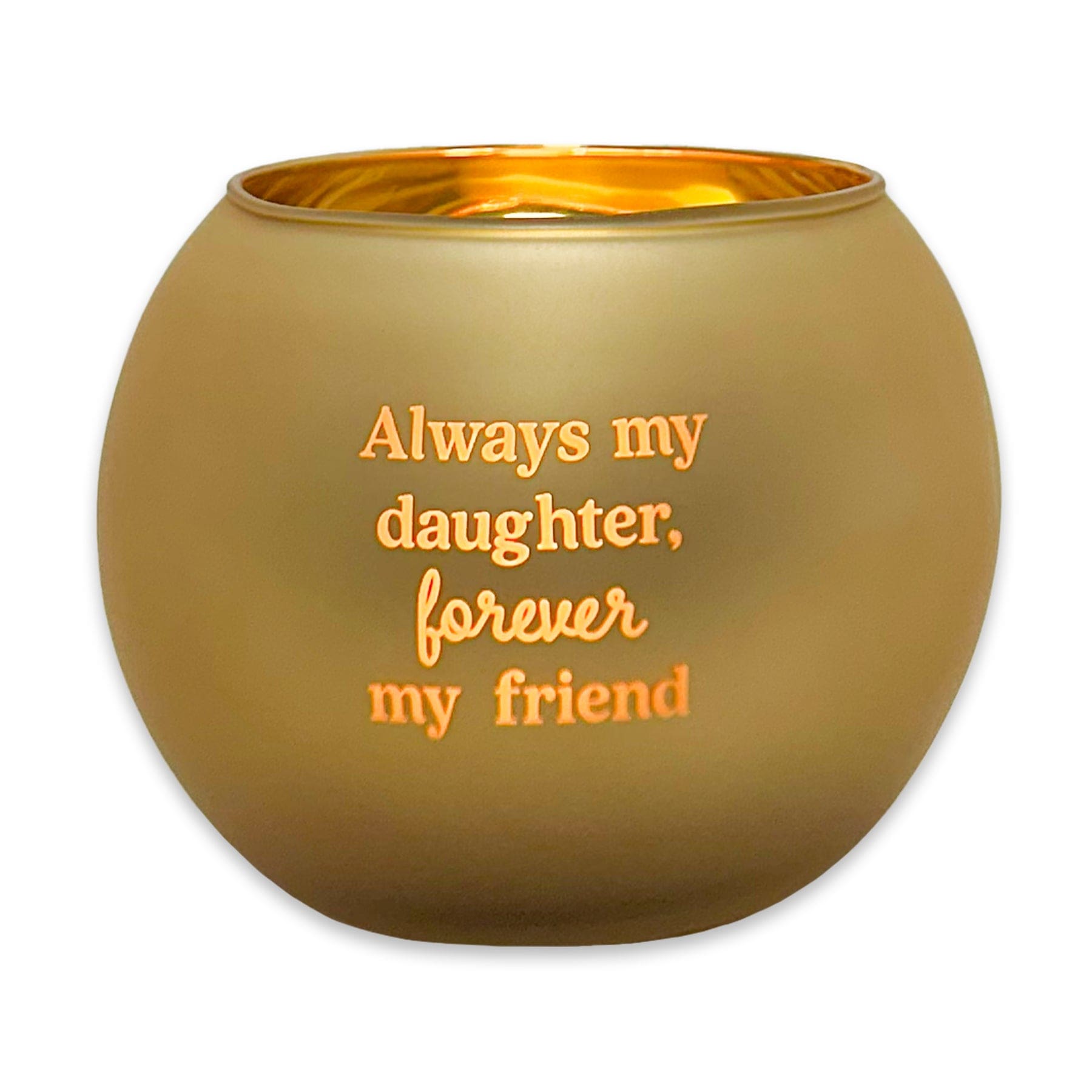 Candle Holder Size 3.75″ w x 3.125″ h Message inside: Always my daughter, forever my friend