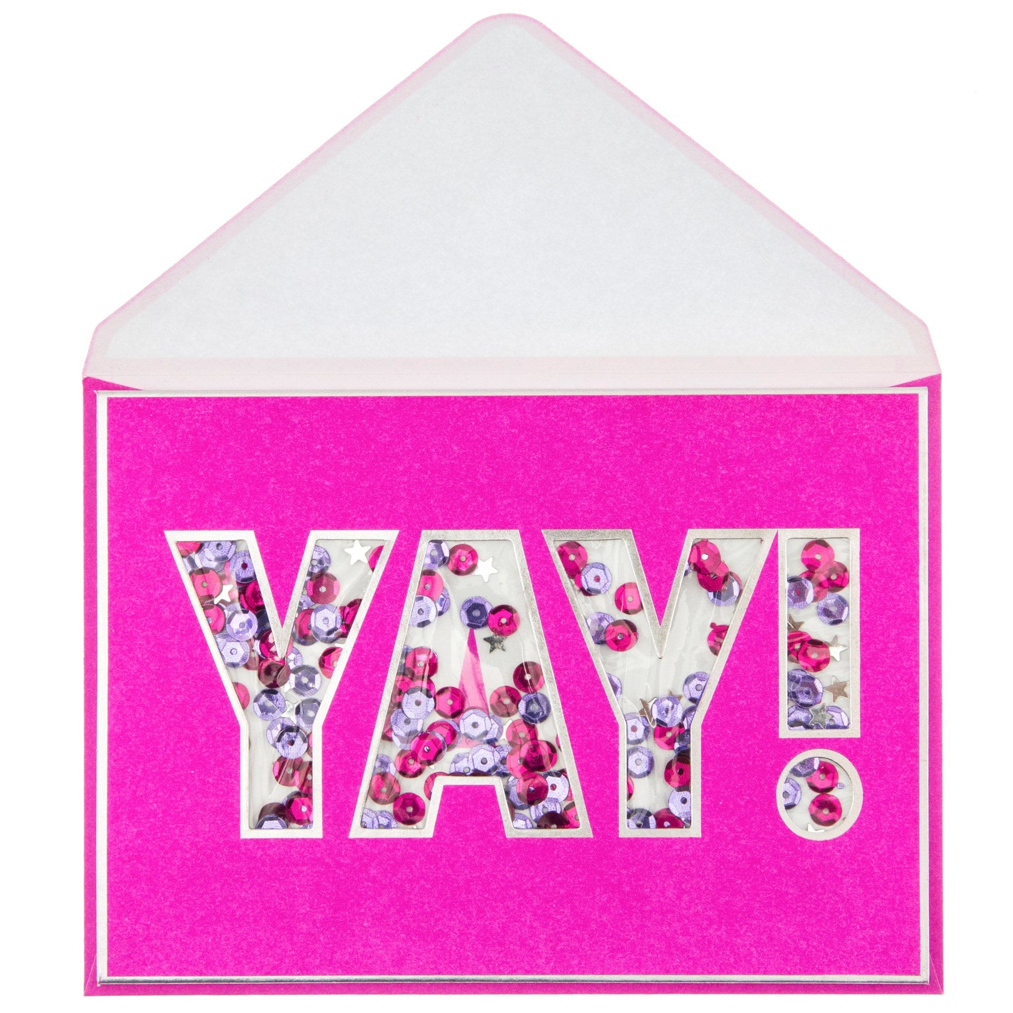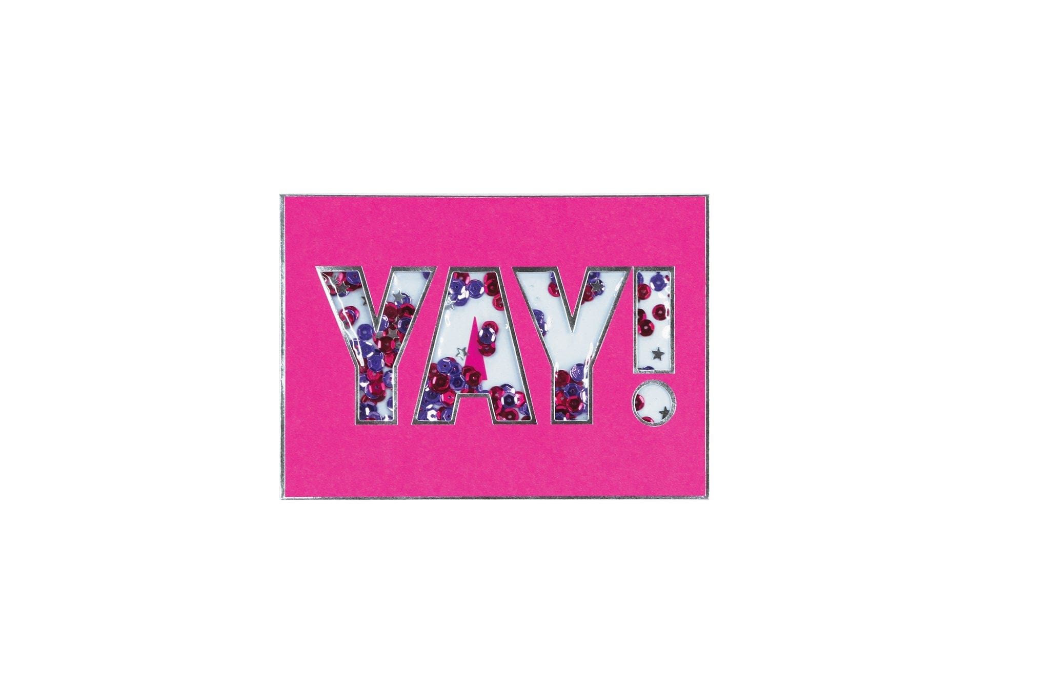 This 4.75″ x 6.62″ Handmade Greeting Card features silver foil, die-cut and shaker. Paired with a colour-coordinating envelope. INSIDE: Many congrats to you!