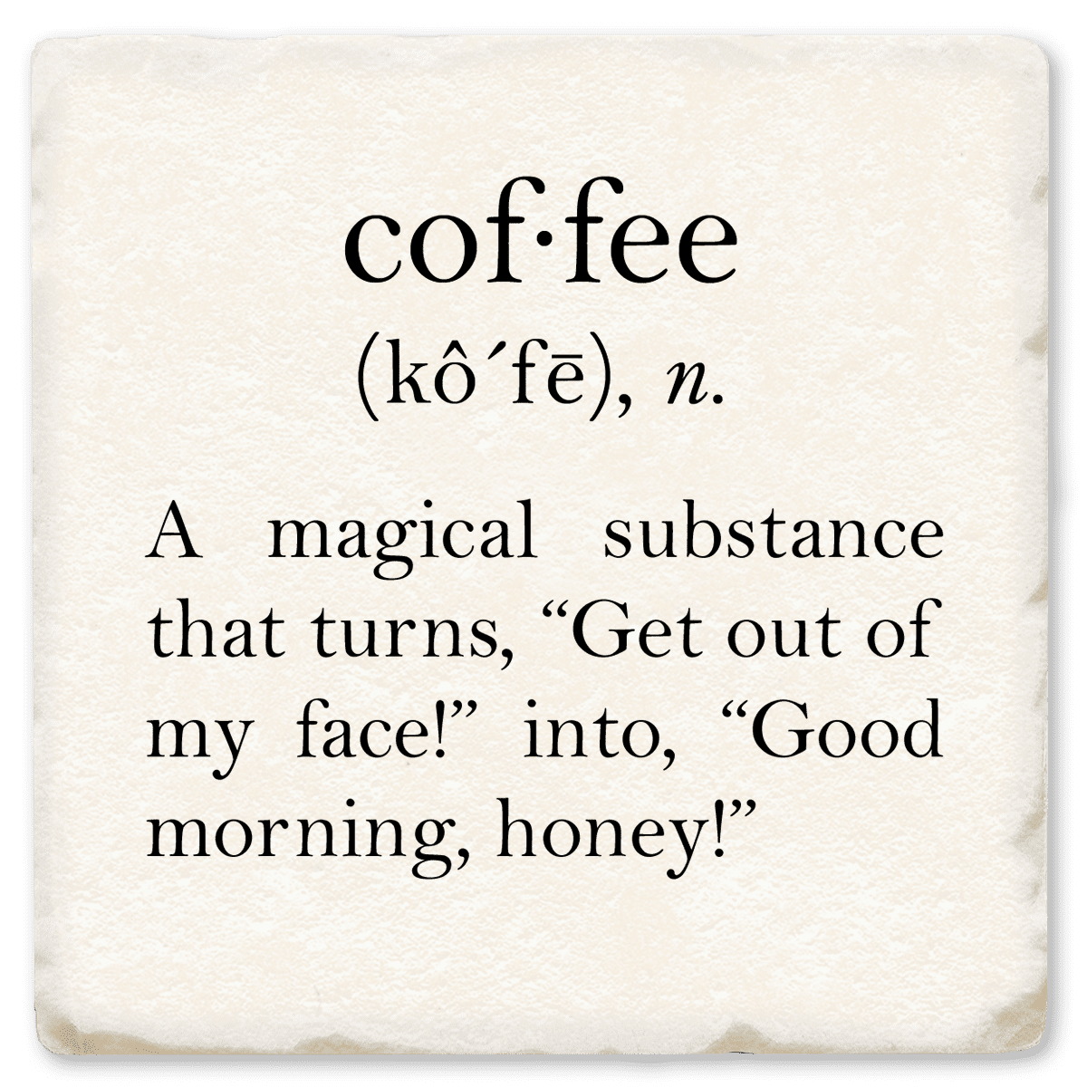 Funny and absorbent 4″ x 4″ coaster. Condensation disappears before your eyes! Printed with high-res graphics and humorous sayings that won’t fade or wear off. Made in America of smooth, thin, lightweight ceramic with full-coverage cork backing.