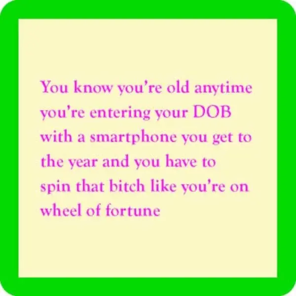 Bright and witty 4 x 4 coaster with cork backing for durability.