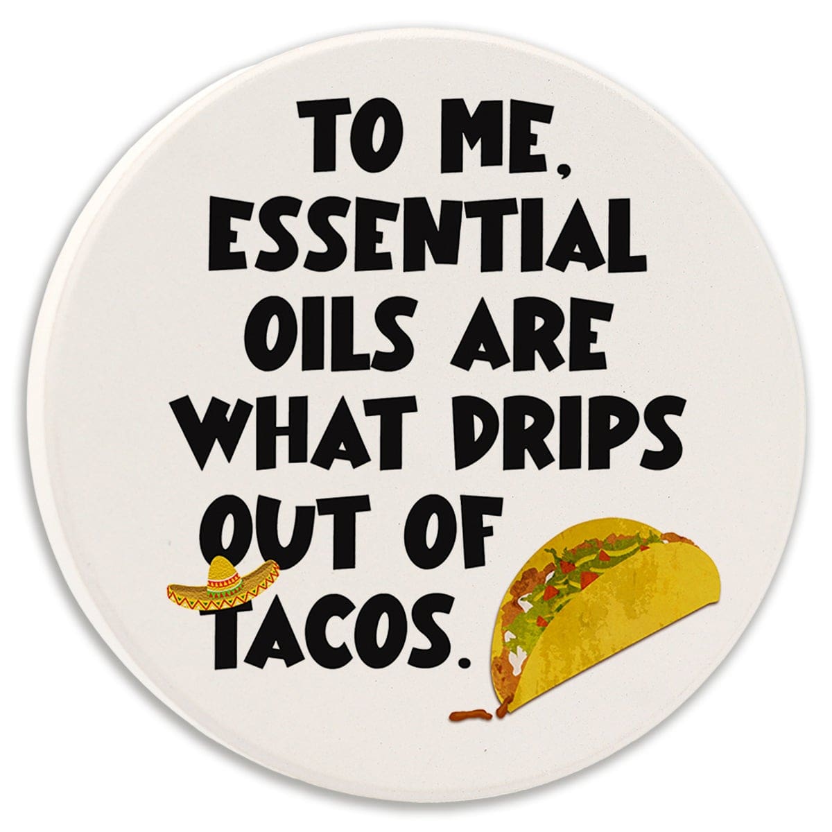 Keep your cup holders clean and dry with these 2.75″ round absorbent car coasters. Permanently printed with high resolution graphics and humorous sayings that won’t fade or wear off. Made in America of absorbent ceramic. Fits most cup holders.