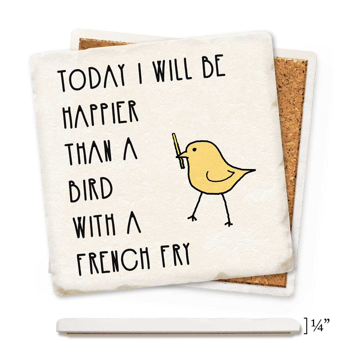 Funny and absorbent 4″ x 4″ coaster. Condensation disappears before your eyes! Printed with high-res graphics and humorous sayings that won’t fade or wear off. Made in America of smooth, thin, lightweight ceramic with full-coverage cork backing.