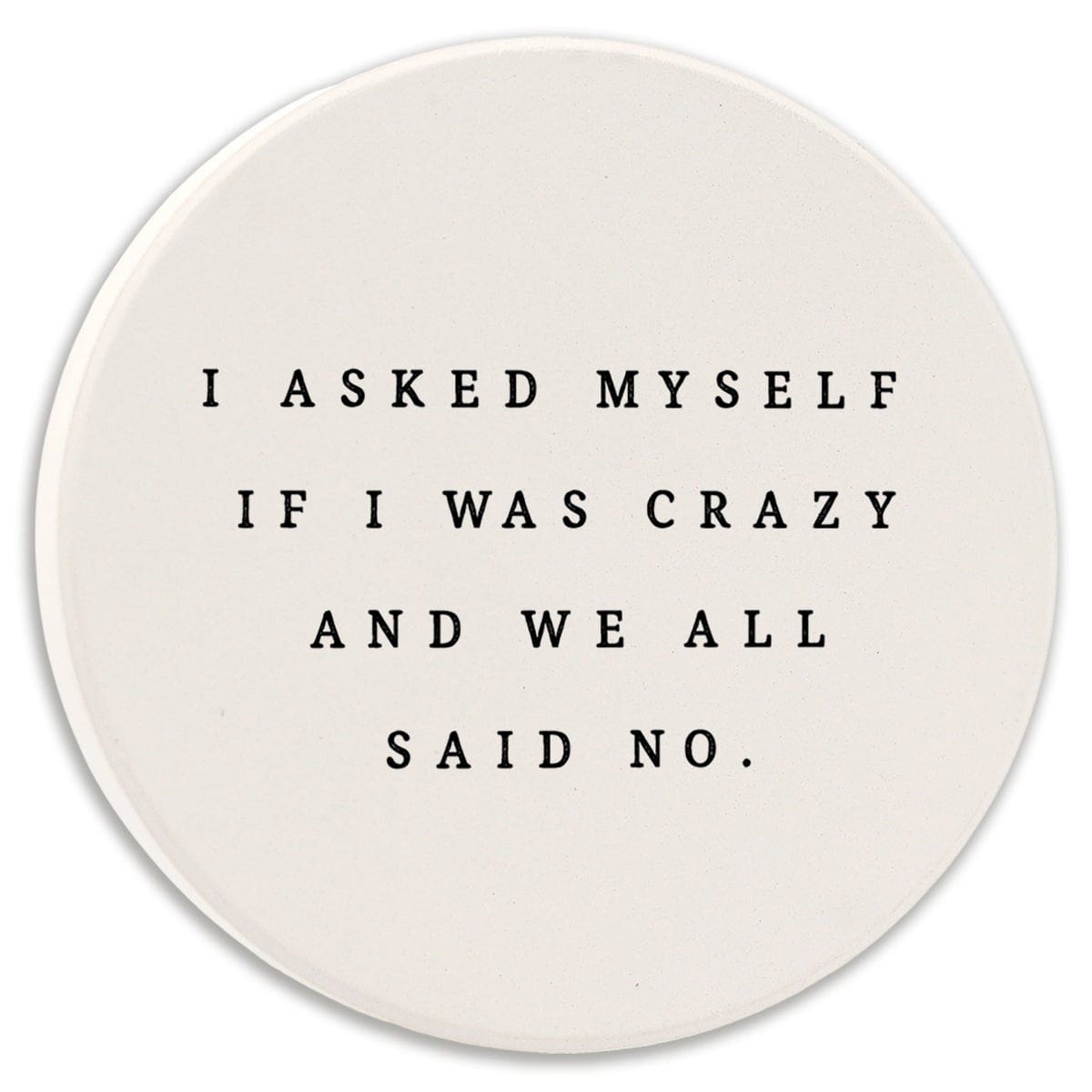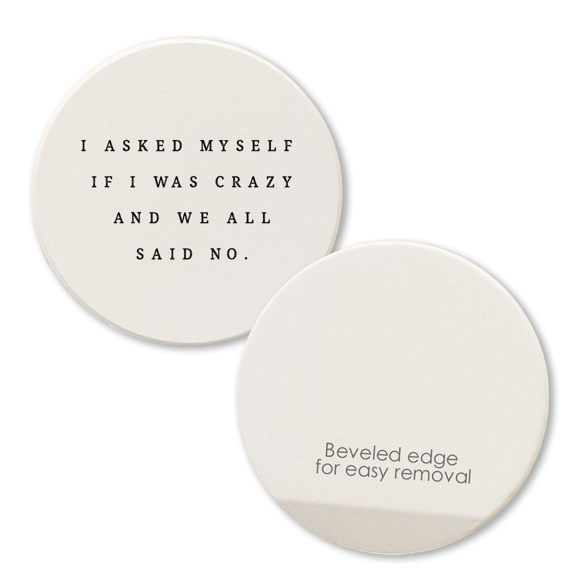 Keep your cup holders clean and dry with these 2.75″ round absorbent car coasters. Permanently printed with high resolution graphics and humorous sayings that won’t fade or wear off. Made in America of absorbent ceramic. Fits most cup holders.