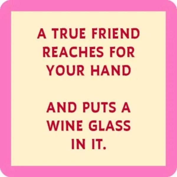 Bright and witty 4 x 4 coaster with cork backing for durability.