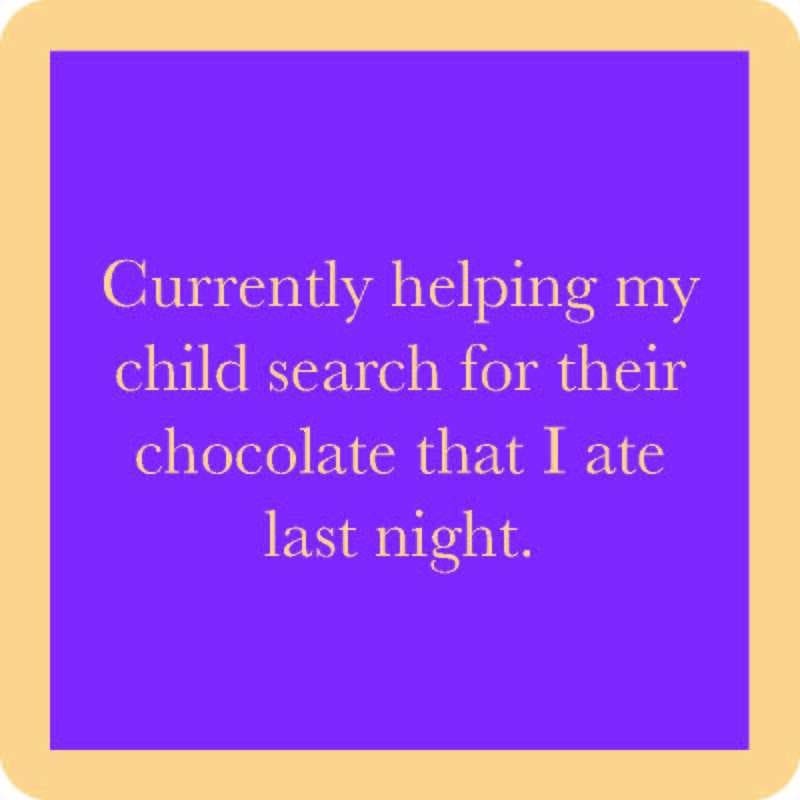 Bright and witty 4 x 4 coaster with cork backing for durability.