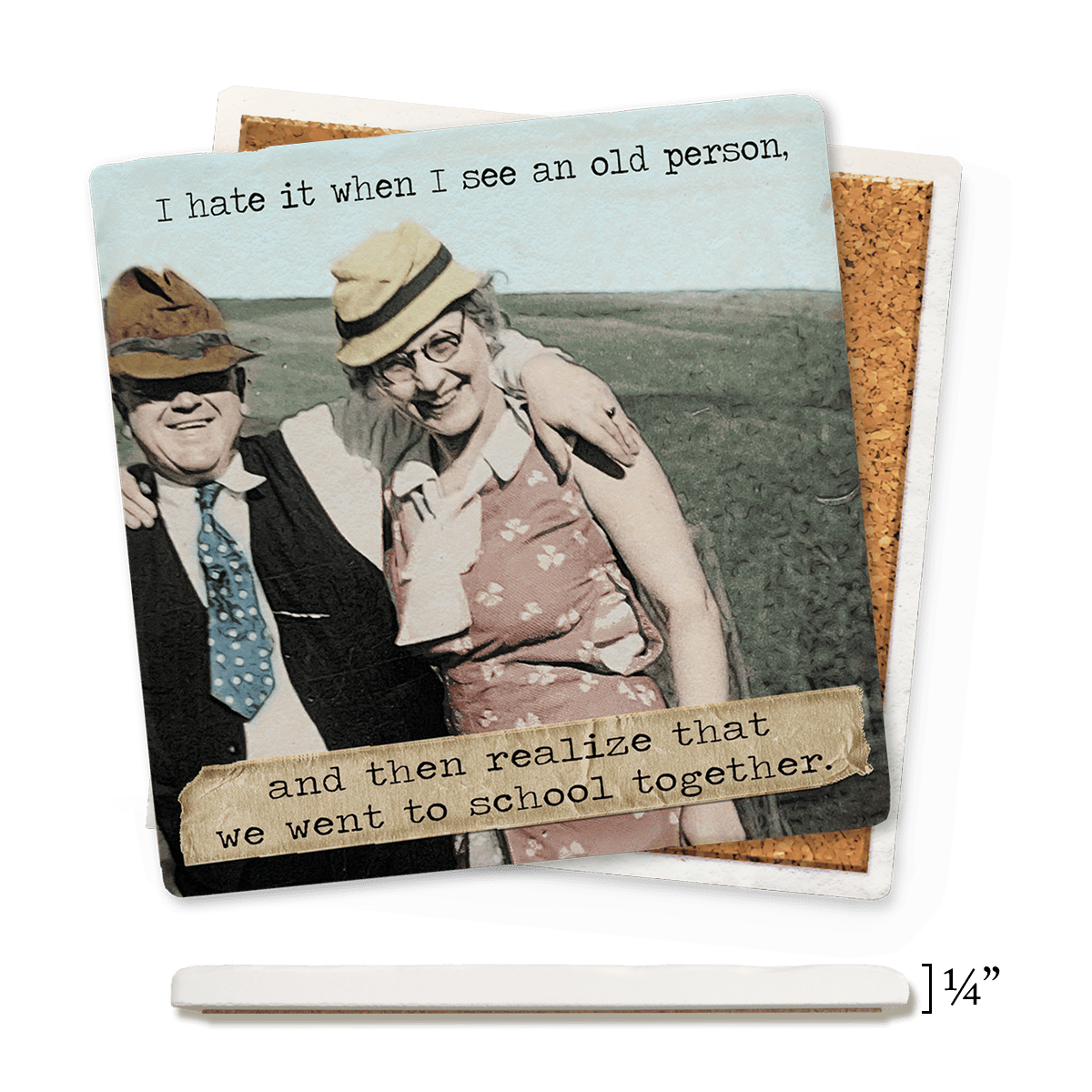 Funny and absorbent 4″ x 4″ coaster. Condensation disappears before your eyes! Printed with high-res graphics and humorous sayings that won’t fade or wear off. Made in America of smooth, thin, lightweight ceramic with full-coverage cork backing.