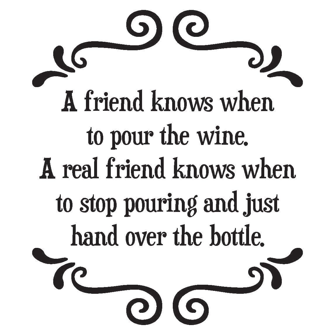 A real friend knows when to stop pouring and just hand over the bottle. Size: 3.8125 x 3.8125 Heavy duty, durable melamine with a smooth and shiny surface that is easy to clean. Each coaster is backed with protective cork.