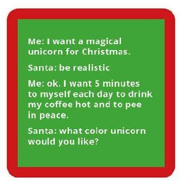 Bright and witty 4 x 4 coaster with cork backing for durability.