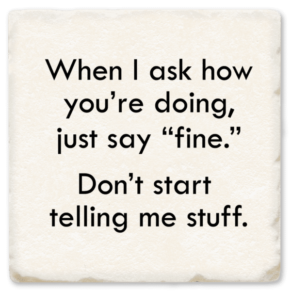 Funny and absorbent 4″ x 4″ coaster. Condensation disappears before your eyes! Printed with high-res graphics and humorous sayings that won’t fade or wear off. Made in America of smooth, thin, lightweight ceramic with full-coverage cork backing.