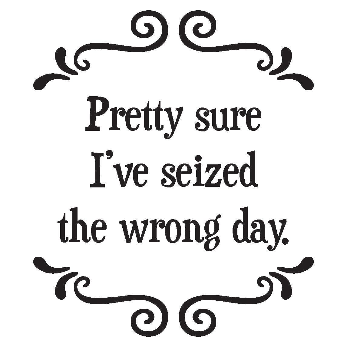 Pretty sure I™ve seized the wrong day. Size: 3.8125 x 3.8125 Heavy duty, durable melamine with a smooth and shiny surface that is easy to clean. Each coaster is backed with protective cork.