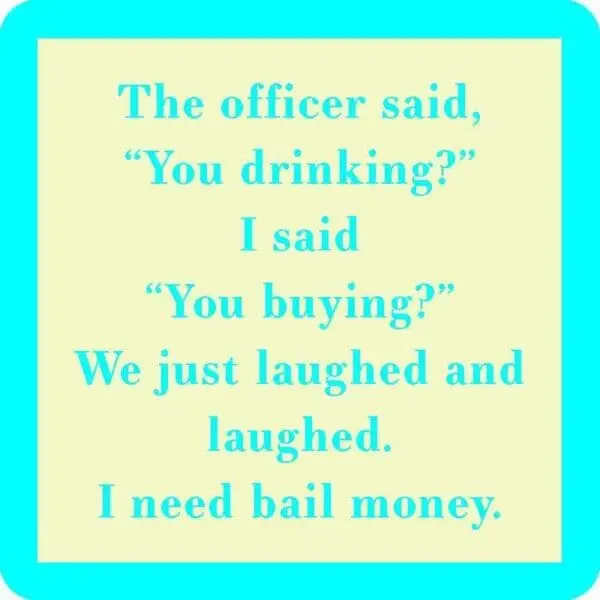 Bright and witty 4 x 4 coaster with cork backing for durability.