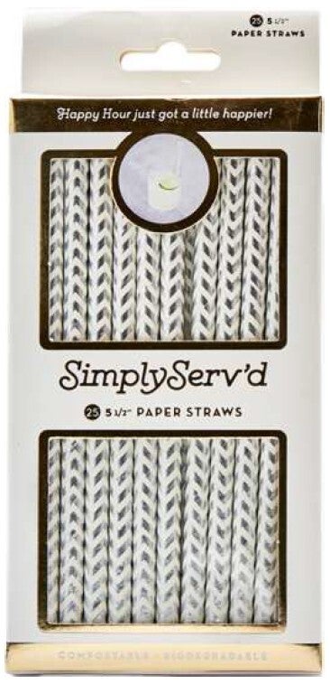 Chevron adorned biogradable paper straws. 25 straws per package.