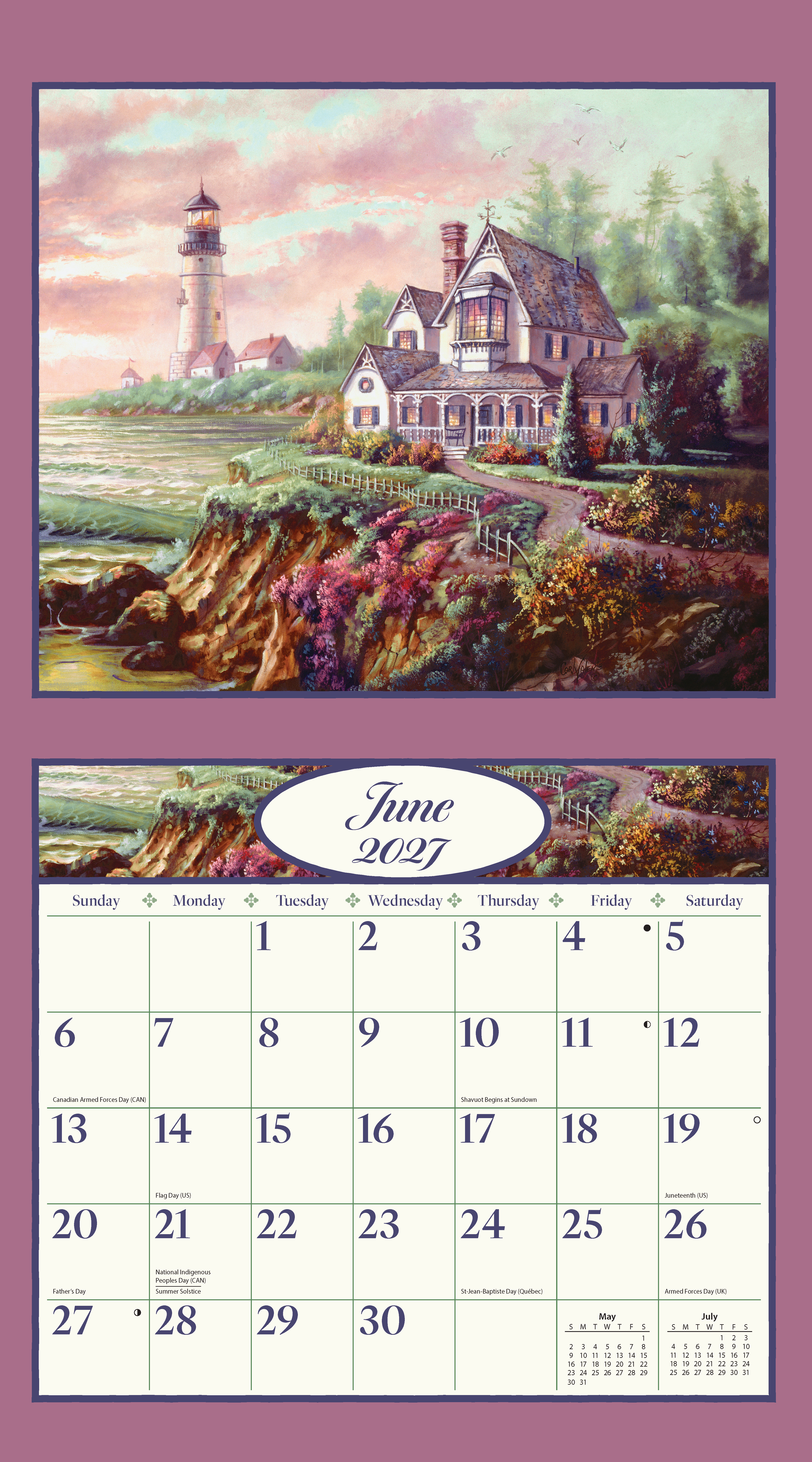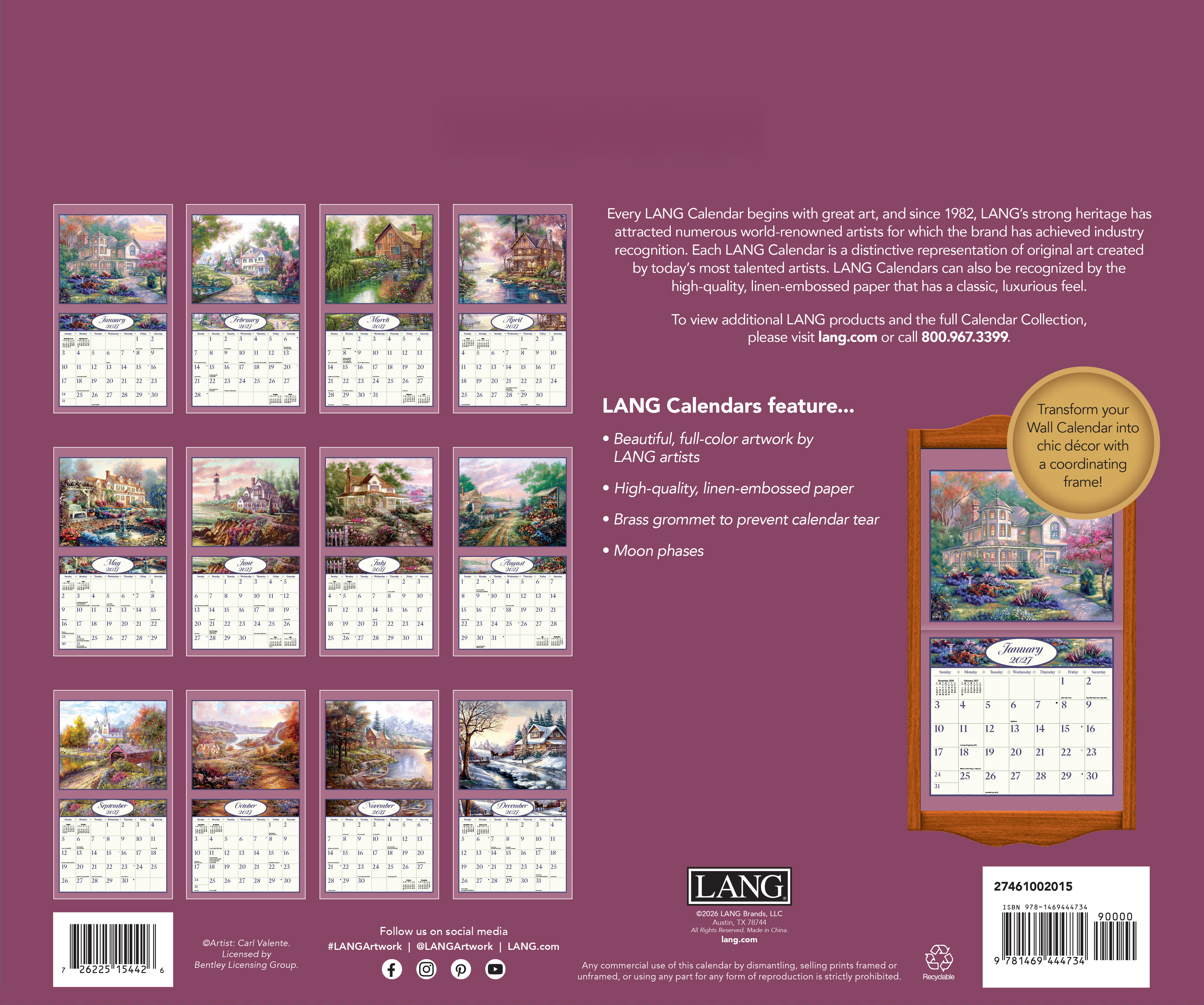 12-month format (Jan-Dec 2027). Nationally recognized artists. Cal size: 13.375″w x 24″h (opened). Includes matching gift jacket, size: 14″wx12.5h. Elegant linen-embossed paper stock w/grommets.