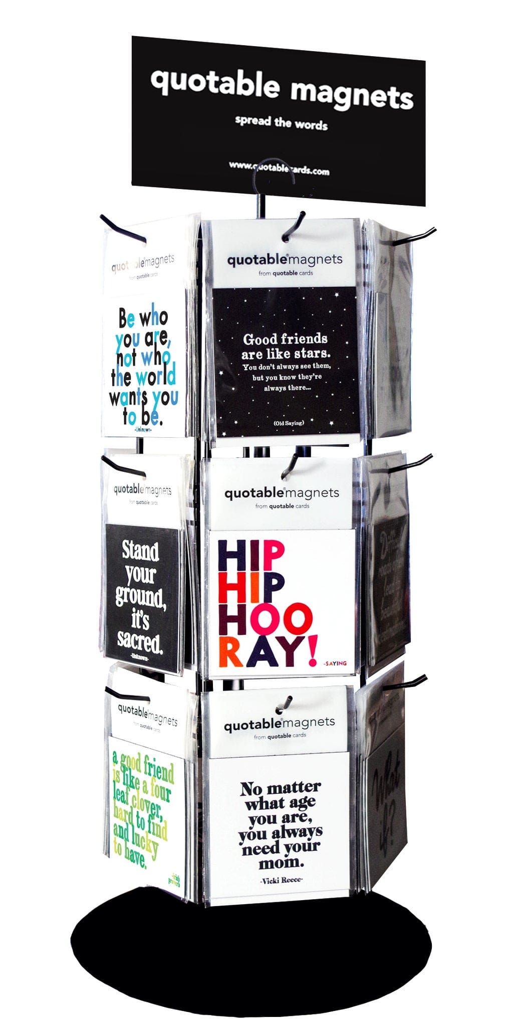 3 Tier/18 hk magnet spinner. 8″w x 18″h black wire spinner holds 18 magnet styles, 6 of each. Display free with fill (108 total)